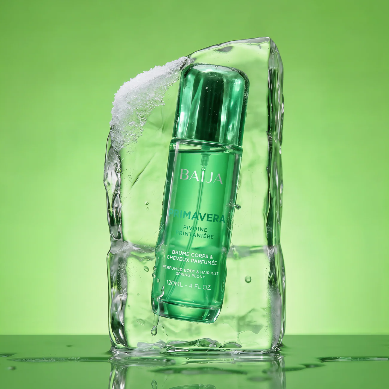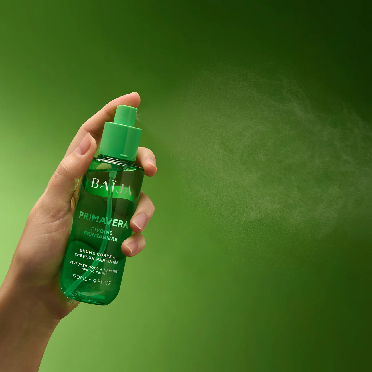 Légère et délicate, la brume parfumée Primavera enveloppe le corps et les cheveux d’un voile fleuri et lumineux. Sa diffusion fine habille la peau d’un sillage doux, pensé comme une parenthèse de renouveau au fil de la journée.