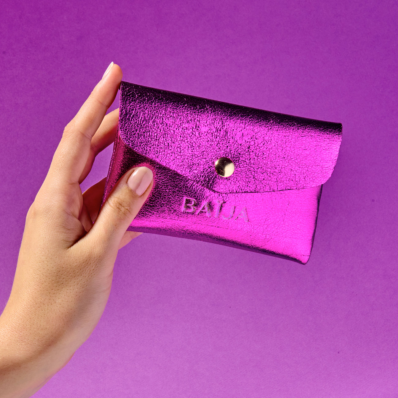Ce porte-monnaie métallique aux reflets vibrants complète l’univers de la collection Minuit Chéri et du Magnetic Mood.